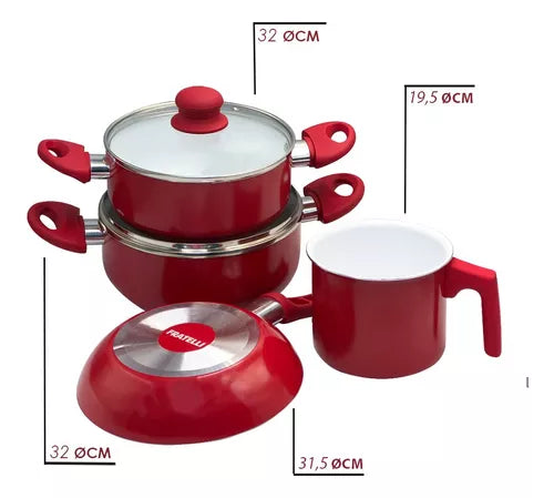 Este conjunto completo inclui duas caçarolas com tampas de vidro de tamanhos variados, uma frigideira e uma leiteira, oferecendo versatilidade para todas as suas receitas. Feito de alumínio de alta qualidade, proporciona excelente condução de calor, enquanto o revestimento cerâmico antiaderente permite cozinhar com menos óleo, preservando o sabor e a textura dos alimentos. A limpeza é simples e rápida, apenas um enxágue e as panelas estão prontas para o próximo uso. Os cabos de baquelite garantem segurança e conforto, tornando o manuseio das panelas fácil e evitando acidentes. Com um design moderno e sofisticado, este conjunto é a escolha ideal para quem deseja funcionalidade e estilo na cozinha.