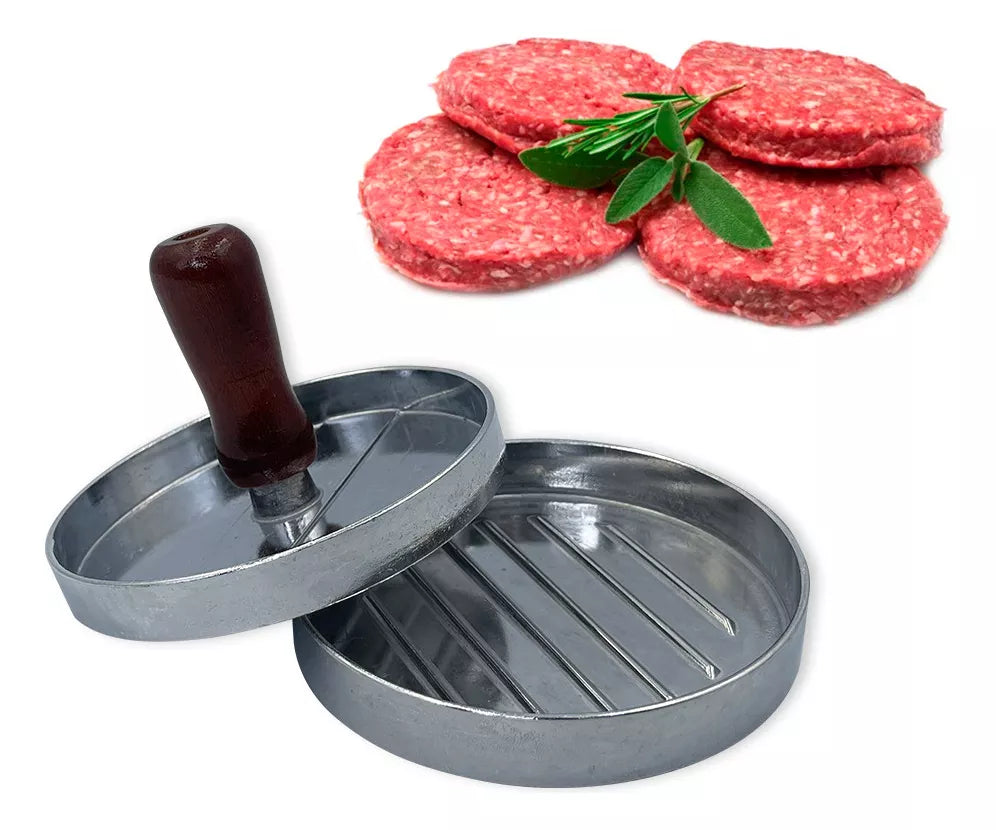 Esta ferramenta prática e eficiente permite que você prepare hambúrgueres artesanais com aparência profissional e sabor irresistível. Basta colocar a carne temperada na forma e moldar na espessura desejada, seja um hamburgão suculento ou um delicioso smash burger. Feita em alumínio, a forma garante durabilidade, fácil limpeza e evita a transferência de odores ou sabores de outros alimentos. Com a Forma para Hambúrguer, seus hambúrgueres caseiros nunca foram tão fáceis de preparar e tão deliciosos de saborear!