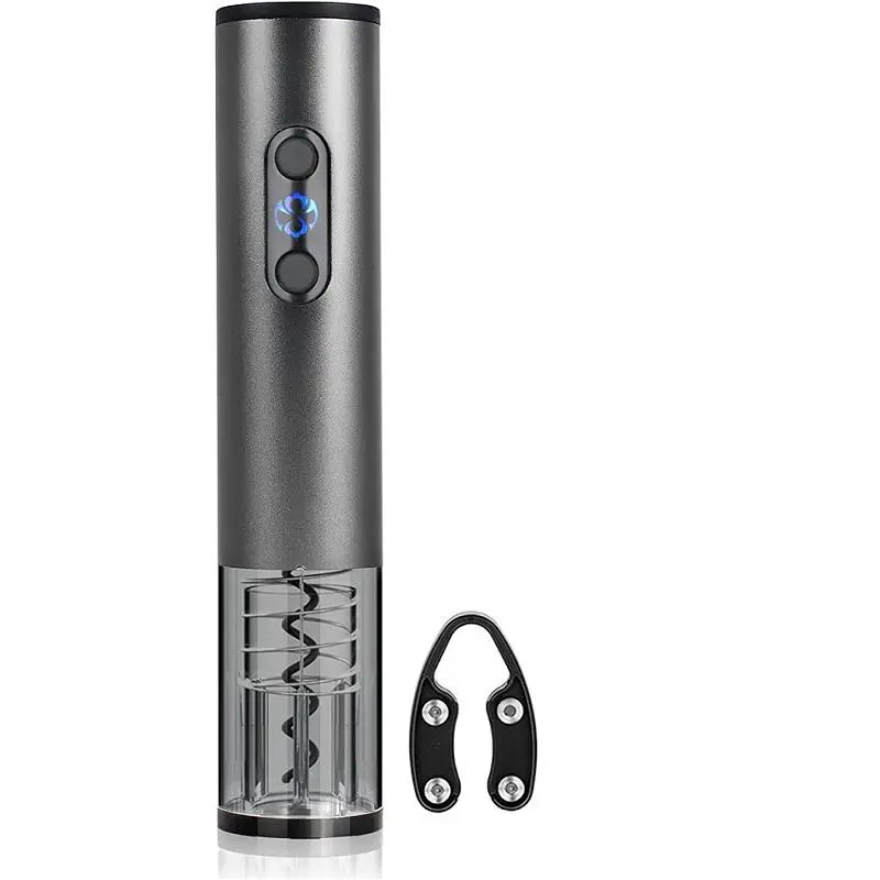 Descubra a elegância e facilidade com o Abridor Elétrico de Vinho, projetado para simplificar cada momento de abrir sua garrafa favorita. Coloque-o sobre a garrafa, assegurando-se de sua posição reta. Com um simples toque no botão inferior, o saca-rolhas gira suavemente no sentido anti-horário, retirando a rolha sem esforço. Erga o abridor e utilize o botão superior para liberar a rolha girando no sentido horário. Para recarregar, basta inserir as pilhas recarregáveis e conectar o cabo USB a um carregador padrão. Transforme cada abertura de vinho em um momento de conveniência e sofisticação.