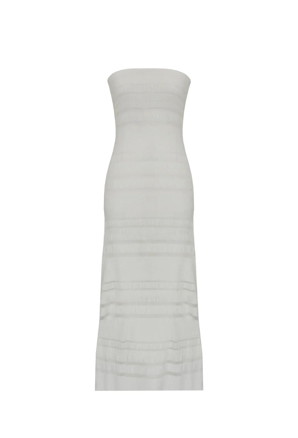 Nosso vestido é a escolha perfeita para um look elegante e versátil. Com design tomara-que-caia, tecido leve e listras delicadas, oferece um visual sofisticado, ideal para a praia ou benefícios casuais.